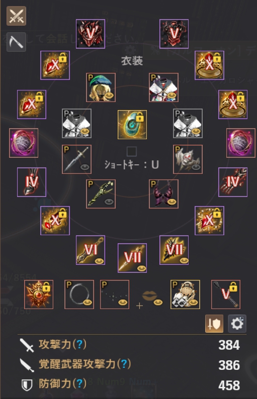覚醒武器攻撃力386!これは朝の国バフが入っている状態なので正確には385です!